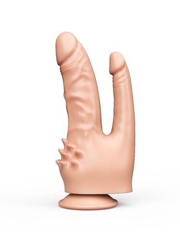 Пока фаллосы массируют стеночки лона и ануса, мяконькие шипы снаружи обеспечивают воздействие на клитор. Лёгкий массаж этой зоны приумножит и без того мощное удовольствие от двойного проникновения. Рабочая длина - 17 см., диаметр головки - 2,9 см.