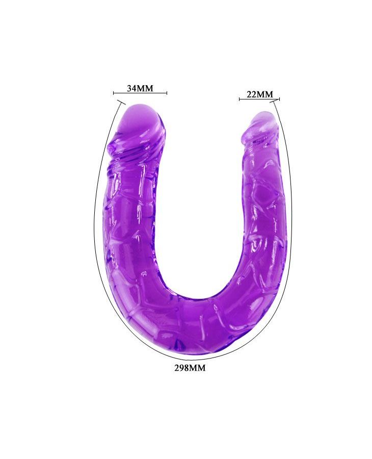 Двухголовый фиолетовый фаллоимитатор - 29,8 см.