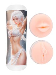 Двойной мастурбатор для мужского удовольствия. С одной стороны - это вагина с нежными половыми губками, с другой – манящий сексуальный ротик. Телесный цвет и мягкий эластичный материал придают интимному аксессуару реалистичности. Рельефная внутренняя поверхность усиливает возбуждение. Мастурбатор сквозной, поэтому может использоваться сразу двумя партнёрами. Секс-игрушка помещена в пластиковую колбу, которая защищает от загрязнений и повреждений. При использовании интимный аксессуар может извлекаться из колбы или оставаться в ней. Соблазнительная девушка-аниме на колбе притягивает взгляд, возбуждает, обещает незабываемое эротическое наслаждение. Такая упаковка обязательно привлечёт внимание, а сам мастурбатор подарит множество чувственных эротических мгновений.