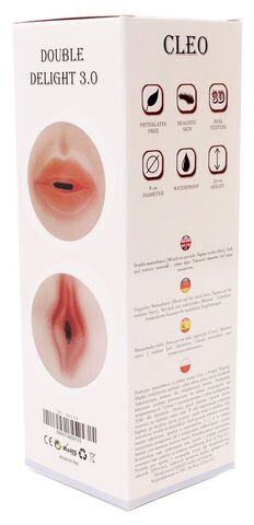 Двусторонний мастурбатор в колбе Cleo - вагина и ротик