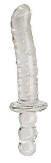 Двусторонний стеклянный стимулятор с красивой спиралью внутри. Может использоваться для вагинальной или анальной стимуляции. Длина фаллоса - 14 см.