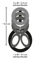 Дымчатая насадка на пенис и мошонку с гребнем Penis Hodenring. Эластичная насадка, состоящая из гибкой основы и колец на ней. Четыре кольца плотно обхватывают пенис, два кольца обхватывают мошонку. Эластичные кольца соединены зубчатым гребнем для усиленного воздействия на стенки вагины. Диаметр колец для члена - 2,2 см.