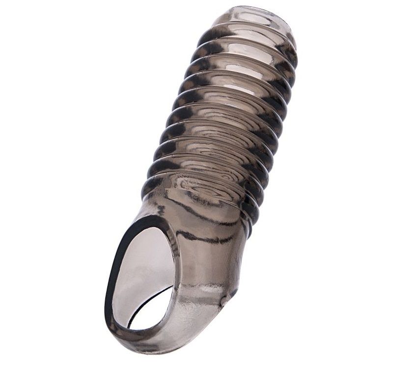 Дымчатая насадка с рёбрышками и подхватом мошонки ToyFa XLover - 12,5 см.