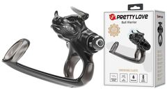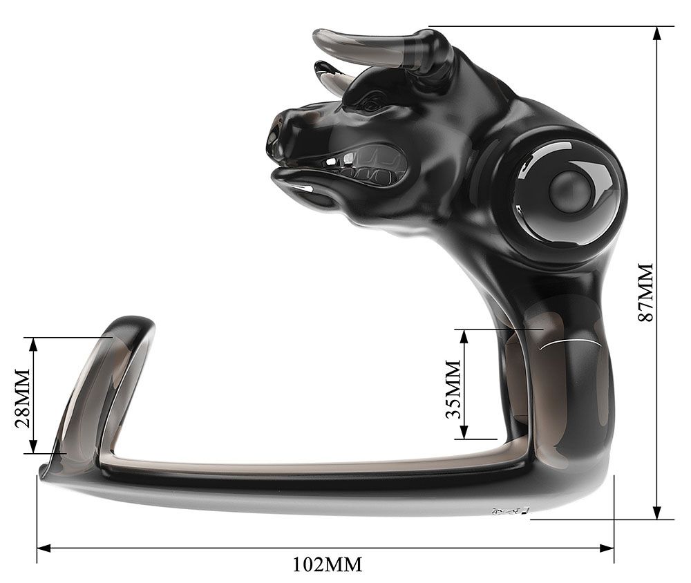 Насадка на пенис с вибратором для клитора в виде головы быка и дополнительным кольцом под головку. Имеет 10 режимов вибрации. Диаметр колец - 2,8 и 3,5 см.