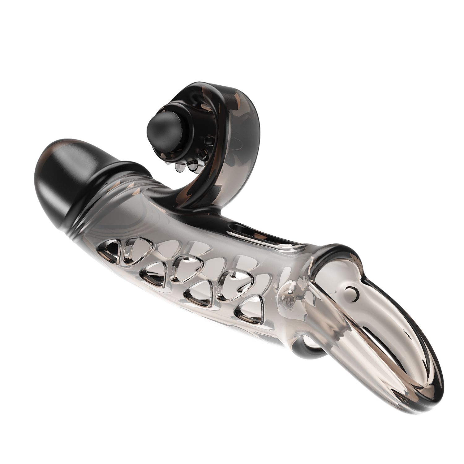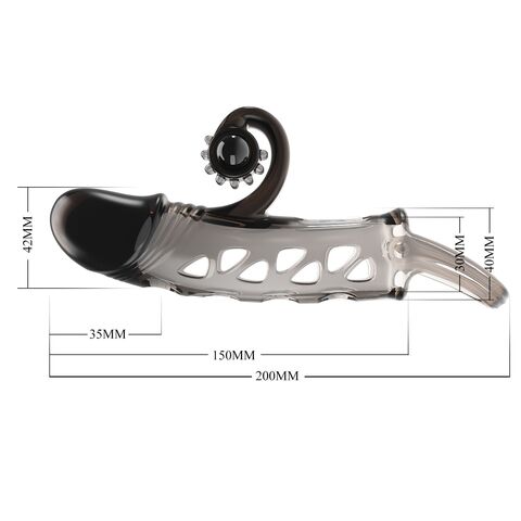 Вибронасадка на пенис – это отличное и безопасное средство увеличить половой член, продлив при этом секс и подарив партнерше новые эмоции. Она изготовлена из ТПЕ и фиксируется на месте с помощью петельки. Длина без подхвата - 15 см.