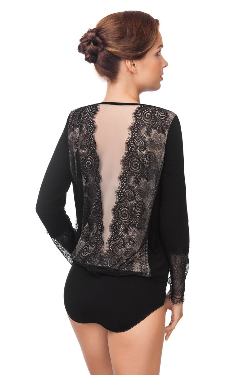 Эффектное боди с кружевом на руках и полупрозрачной спинкой