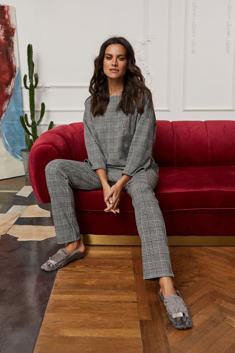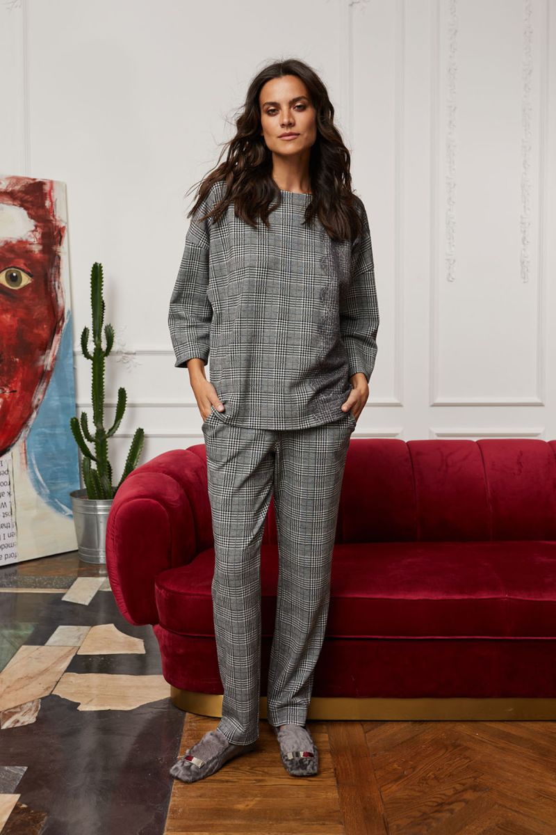 Элегантная домашняя блуза выполнена из смесовой клетчатой ткани. Модель свободного силуэта с рукавами длиной 3/4. Комфортная и при этом женственная блуза. Прекрасная модель для поклонниц сдержанной классики в стиле одежды.