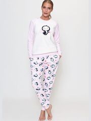 Комплект из микрофибры. Свитшот из однотонной ткани с длинным рукавом, с аппликацией, брюки прямого покроя с рисунком, на манжетах. В комплекте: свитшот, брюки.