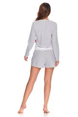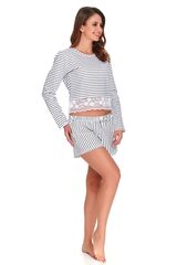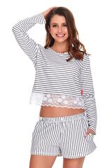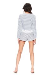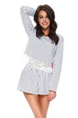 Элегантная пижама в морском стиле состоит из лонгслива и шортиков с карманами. Низ лонгслива декорирован нежным кружевом. Шорты свободного кроя, пояс на мягкой широкой резинке. Идеальный вариант не только для сна, но и для домашнего отдыха. В комплекте: лонгслив, шорты.