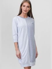 Трикотажная байковая туника из однотонных тканей двух цветов, в боковых швах карманы с отделкой, рукава 3/4 на манжете, низ изделия на манжете.