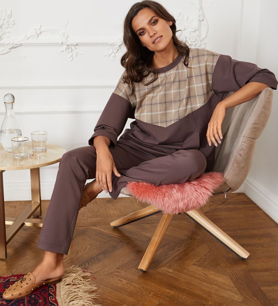 Элегантный джемпер свободного силуэта с округлым вырезом горловины, верхняя часть выполнен из клетчатой ткани. Широкие рукава длиной 3/4 с аккуратными манжетами. Эффектная ткань и модный цвет создают привлекательный образ, подчеркивающий Ваш безупречный стиль.