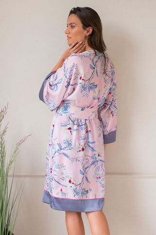 Элегантный халат-кимоно выполнен из натуральной вискозы высокого качества с цветочным принтом. Халат удобной длины до колена, свободного кроя для комфортной носки. Цельнокроеные воздушные рукава длиной 3/4. Халат на запахе. Длинный, съемный пояс отлично подчеркнет ваш силуэт.