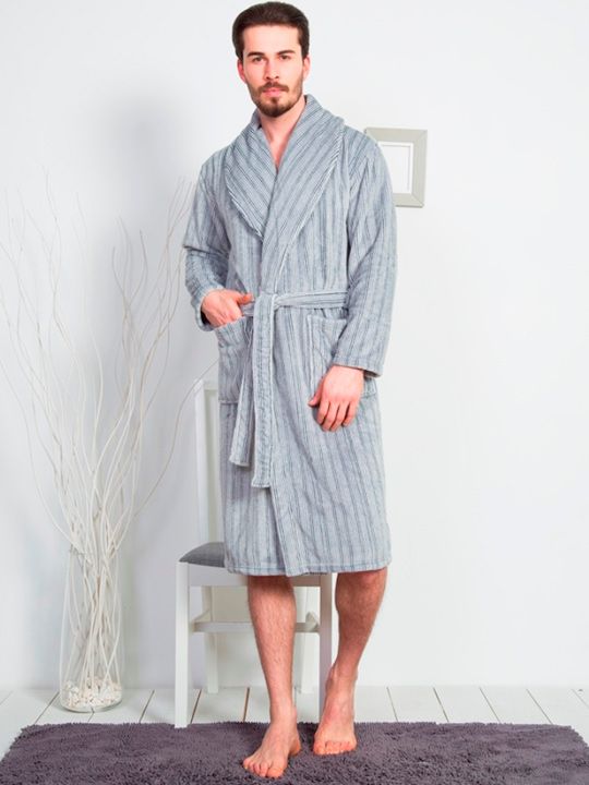 Халат из микрофибры, с отложным воротником, на запахе, с поясом.