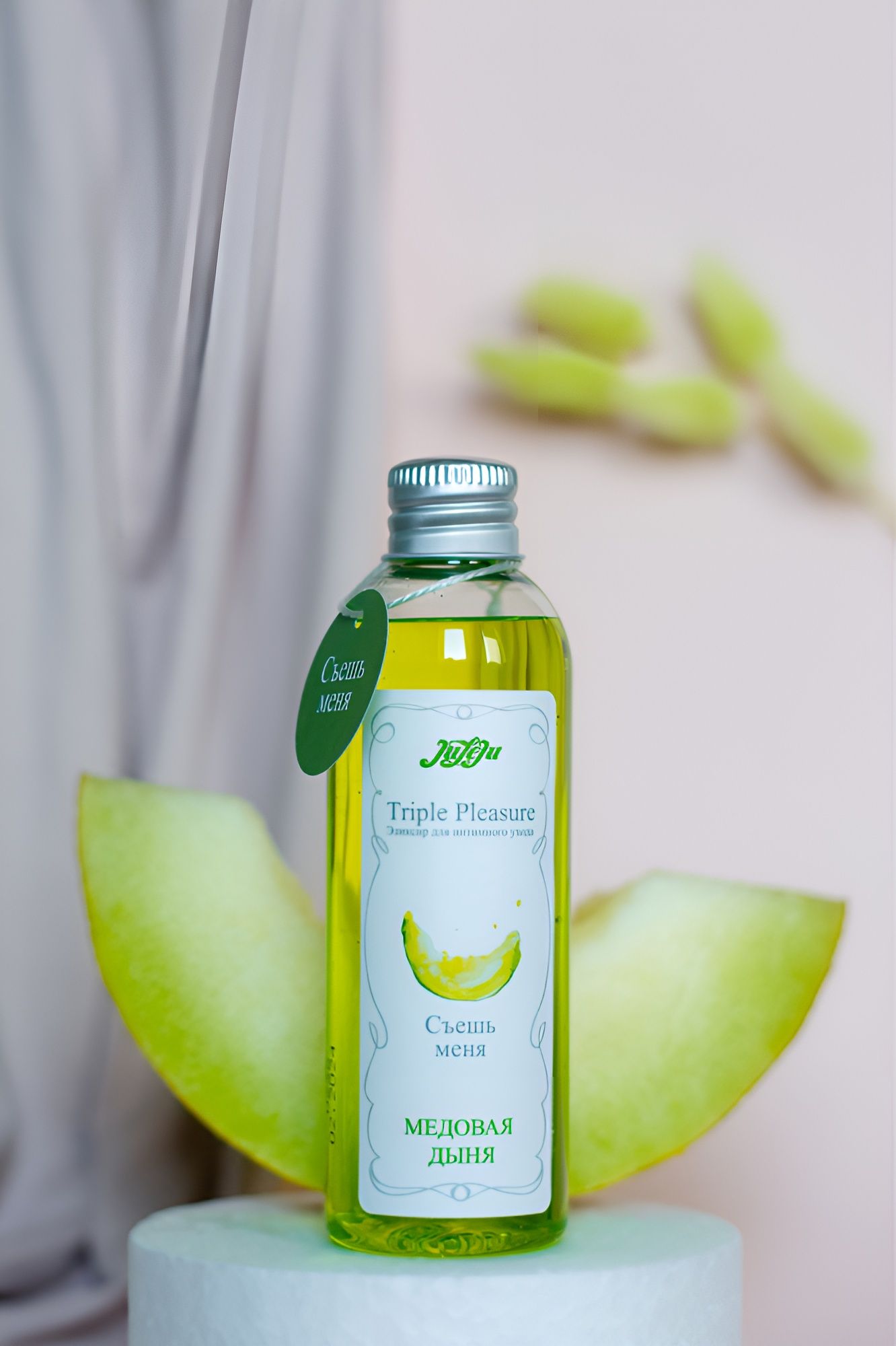 Triple Pleasure «Медовая дыня» от JULEJU – по-настоящему волшебный эликсир, сочетающий в себе качества трёх средств для интимного ухода. Достаточно нанести на кожу несколько капель состава, вкусно пахнущего спелой дынькой, чтобы скольжение рук партнёра по телу стало лёгким и невероятно возбуждающим. Эликсир обладает лёгким согревающим эффектом, в полной мере раскрывающимся от дыхания, скольжения языка по телу и поцелуев. Конечно, эффект тепла скажется и на чувственности интимных ласк, если использовать состав в качестве лубриканта. Таким образом, «Медовая дыня» - это и массажный лосьон, и возбуждающее средство, и универсальная интимная смазка. Поскольку в состав не входят силиконы, консерванты и опасные для здоровья человека добавки, Triple Pleasure от JULEJU подходит для всех видов ласк.
