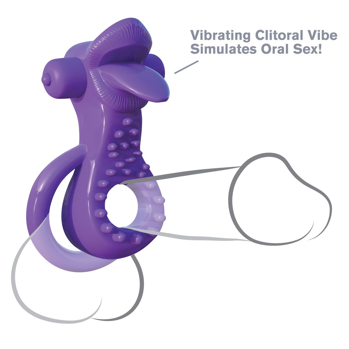 Двойное кольцо обеспечивает продление полового акта и поддержание максимальной эрекции. 3D точки для дополнительной стимуляции промежности. Нежный вибро-язычок мягко ласкает клитор. Неугасающая страсть дарит незабываемые минуты блаженства для двоих. Батарейки в комплекте.