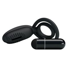 Эрекционное кольцо с вибрацией – любимая игрушка множества пар, так как ощущения, которые она дарит, обеспечивают сильный оргазм и у мужчины, и у женщины. Данное колечко представляет собой симбиоз классического кольца, подхвата для мошонки и большой клиторальной щеточки с вибрацией. Вибропуля съемная. Батарейки в комплекте.