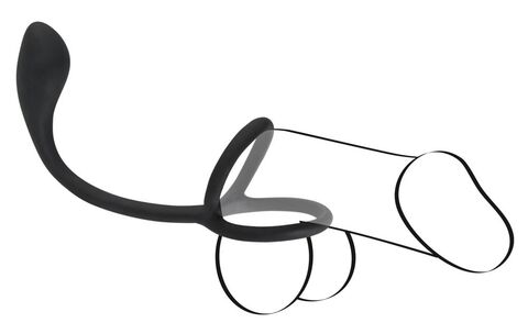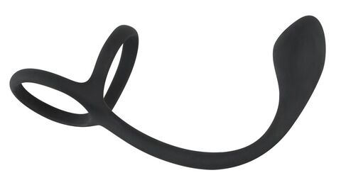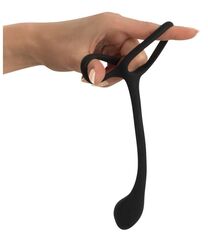 Эрекционное кольцо с утяжкой на мошонку и анальным плаг Black Velvets. Длина анального хвоста - 16 см., рабочая длина - 6 см., диаметр - 2,8 см.