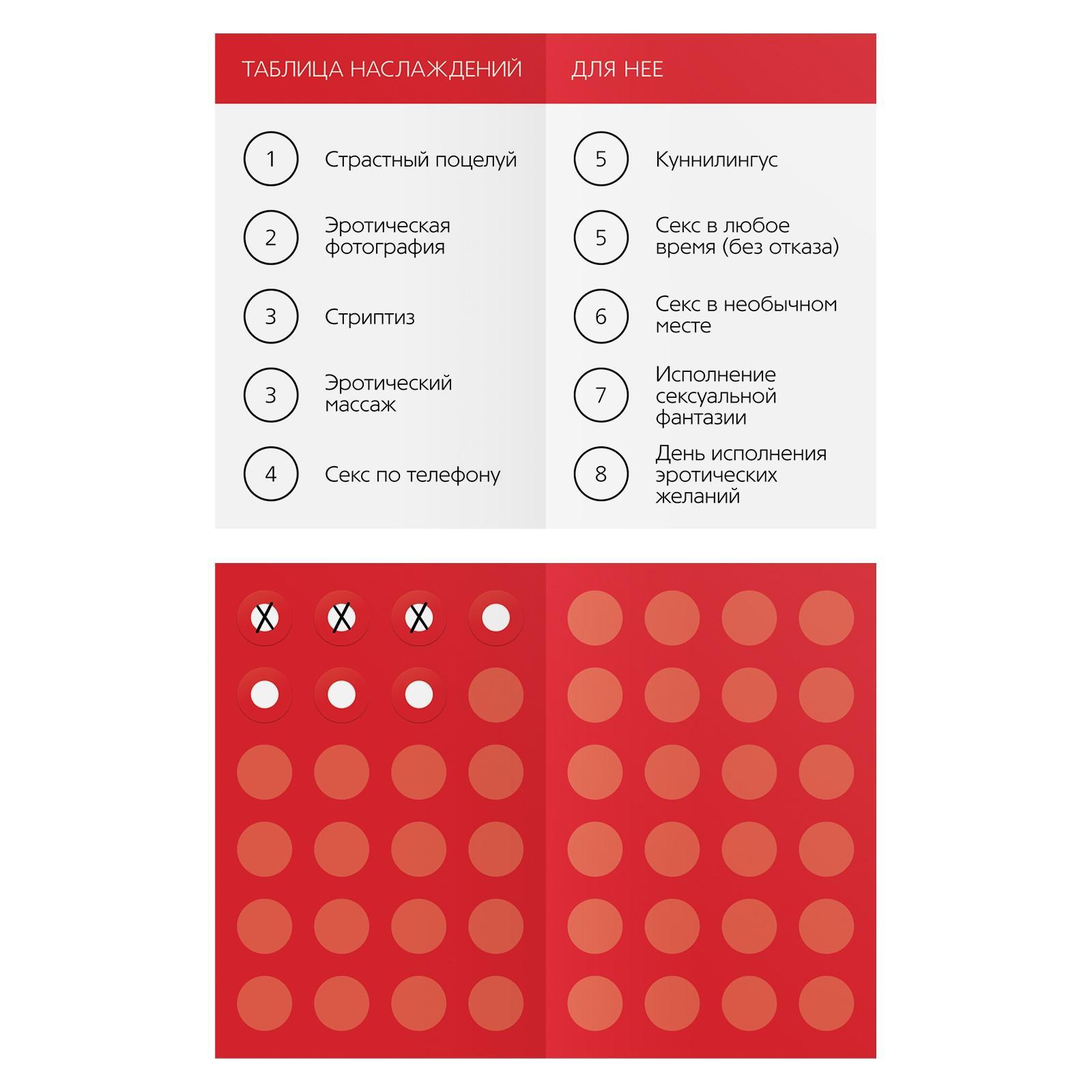 С этой игрой ваши домашние дела станут намного горячее и пикантнее. Вы сможете раскрыться с новой стороны и доставить друг другу невероятное удовольствие. Внутри найдёте карты с откровенными заданиями и таблицу наслаждений, которые доведут вас до экстаза. Подарите друг другу незабываемые эмоции! В комплекте: 40 карт, наклейки, 2 книжки, правила игры.