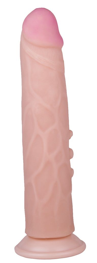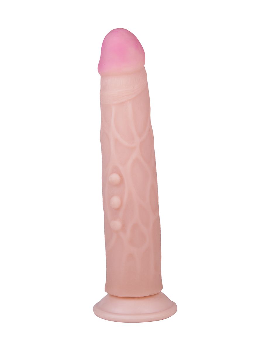 Фаллоимитатор на присоске с венами и точками на стволе - 22,7 см.