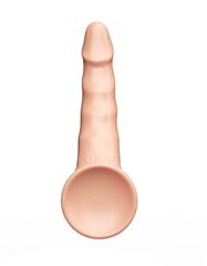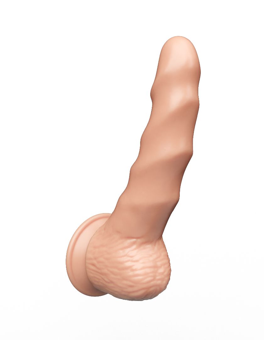 Фаллоимитатор имеет полужесткую структуру и искривлен таким образом, что полностью имитирует физиологическое положение мужского члена. При такой форме и жесткости можно использовать как для анального, так и вагинального секса. Ребристая поверхность придает брутальность и усиливает ощущения во время близости. Рабочая длина - 14 см.