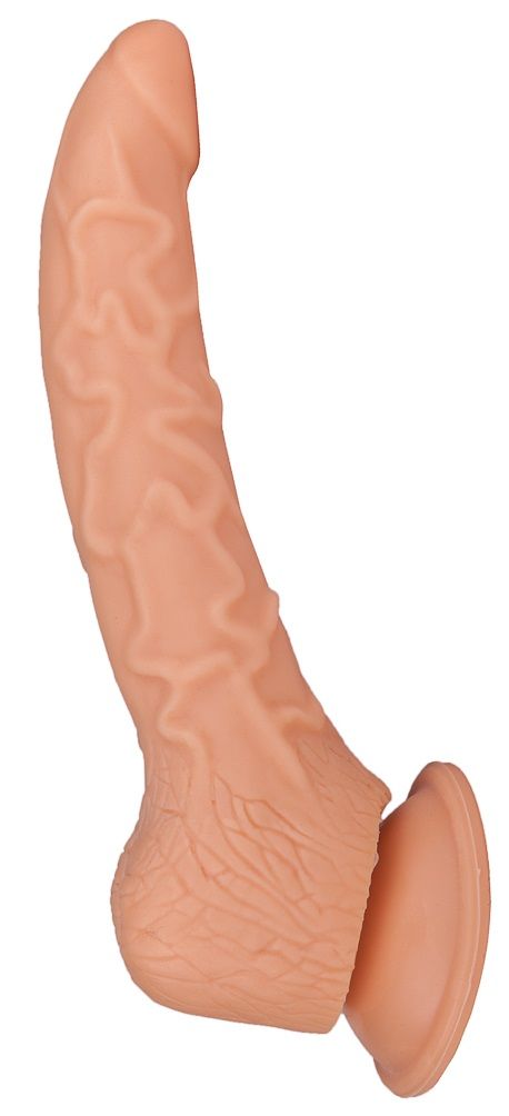 Фаллоимитатор имеет полужесткую структуру и искривлен таким образом, что полностью имитирует физиологическое положение мужского члена. При такой форме и жесткости можно использовать как для анального, так и вагинального секса. Ребристая поверхность придает брутальность и усиливает ощущения во время близости. Рабочая длина - 15 см.
