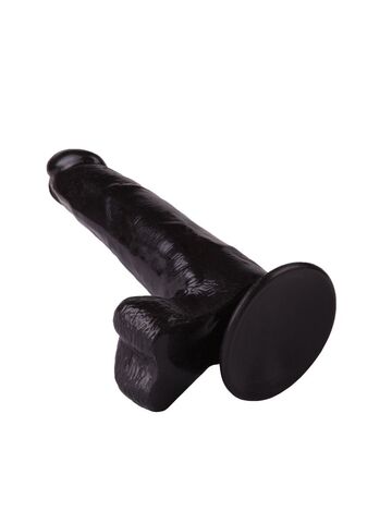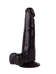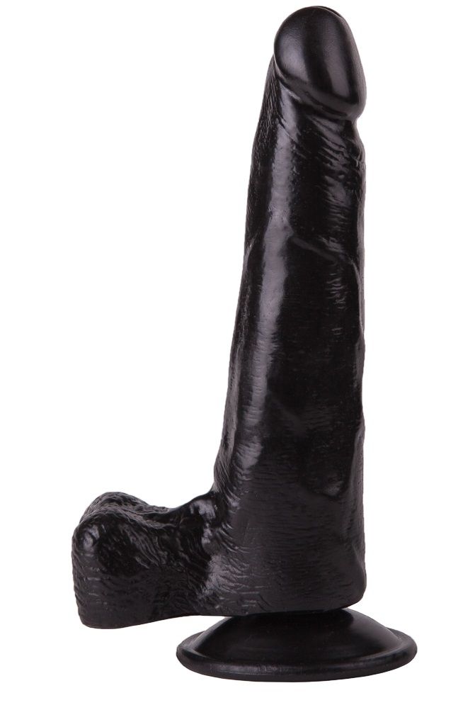 Фаллоимитатор с мошонкой на присоске чёрного цвета - 16,5 см.