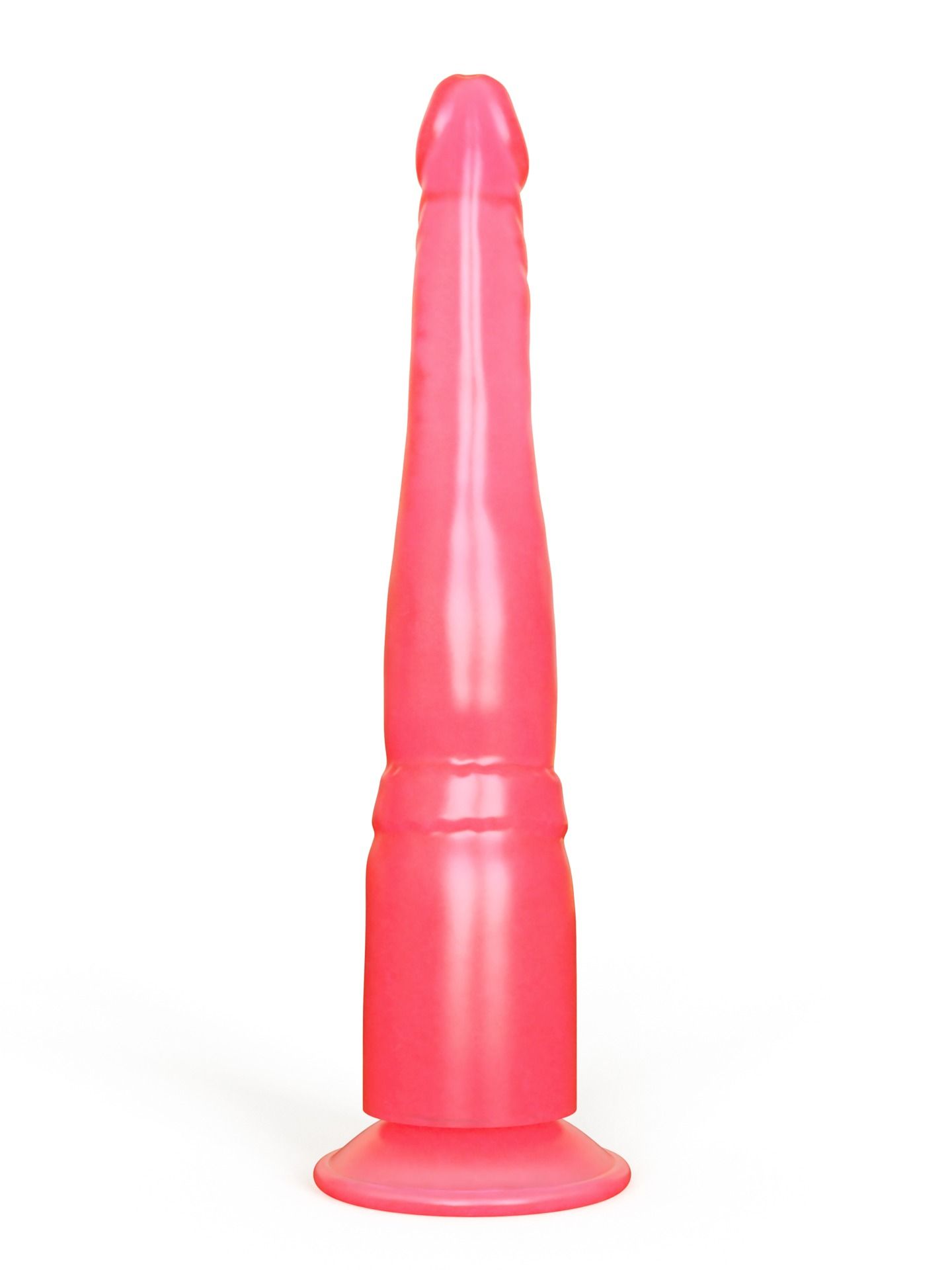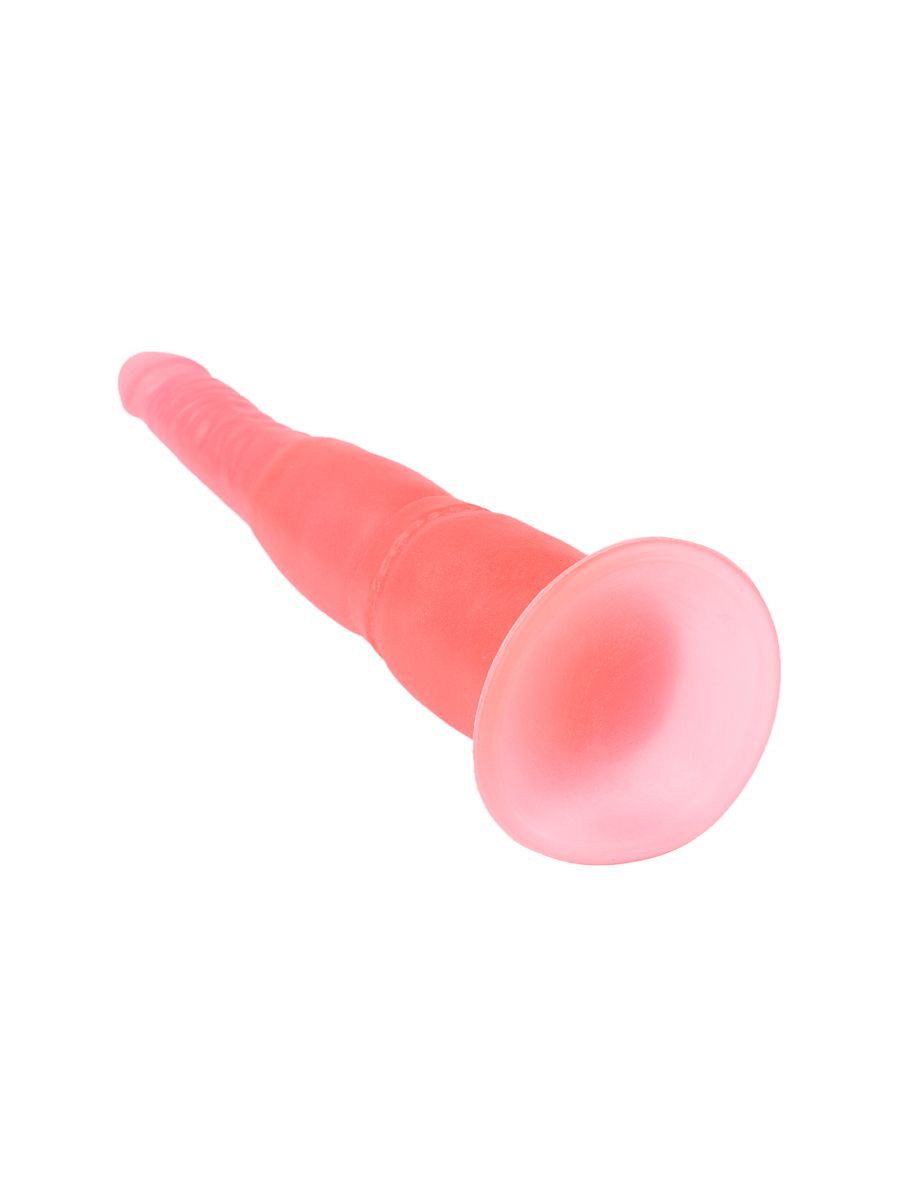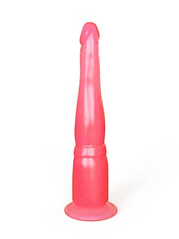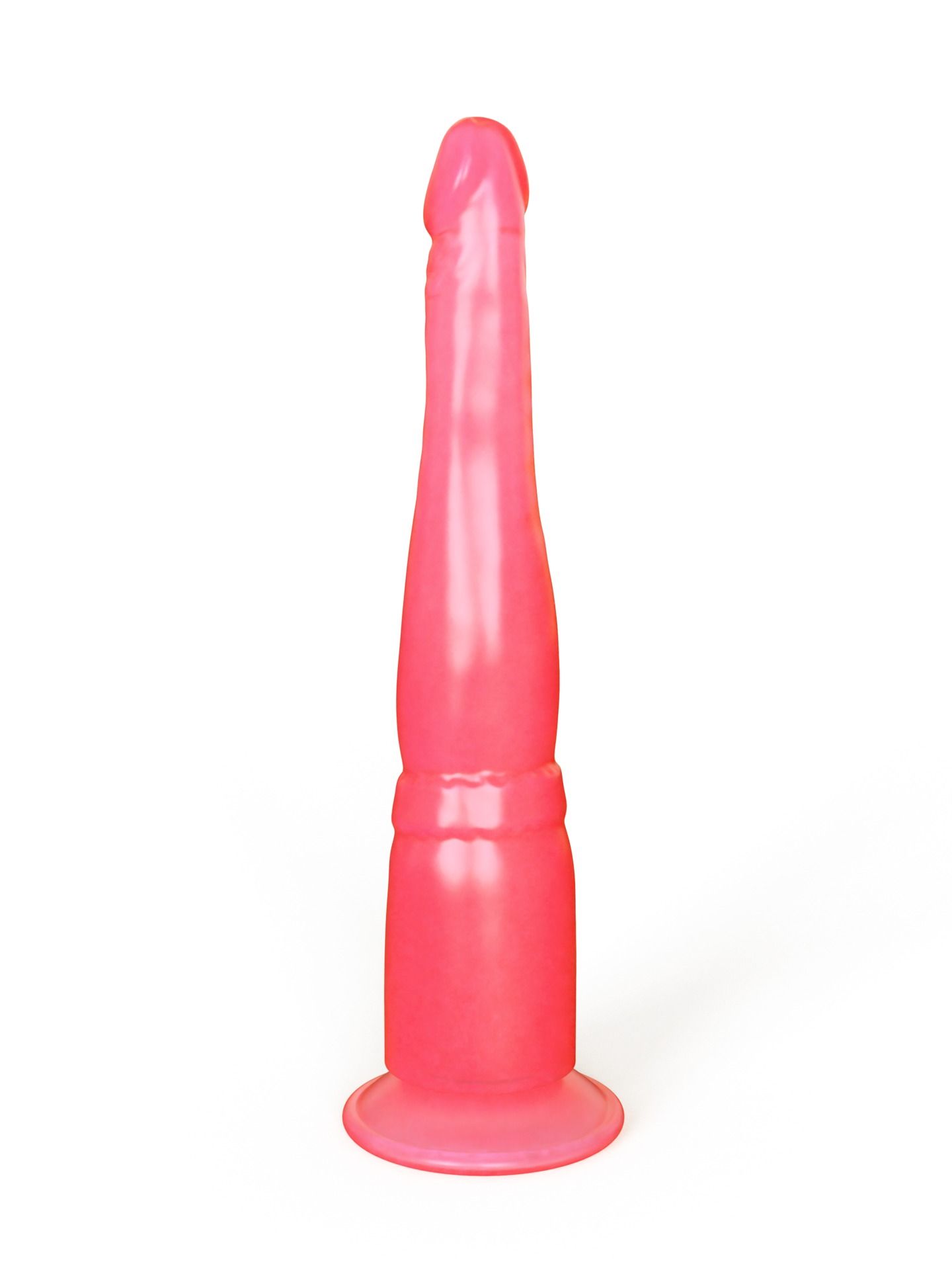 Этот тоненький фаллос из розового геля выглядит абсолютно реалистично: ярко выраженная головка, слегка вытянутая кверху, и легкий рельеф в виде складочек имитируют формы настоящего пениса.