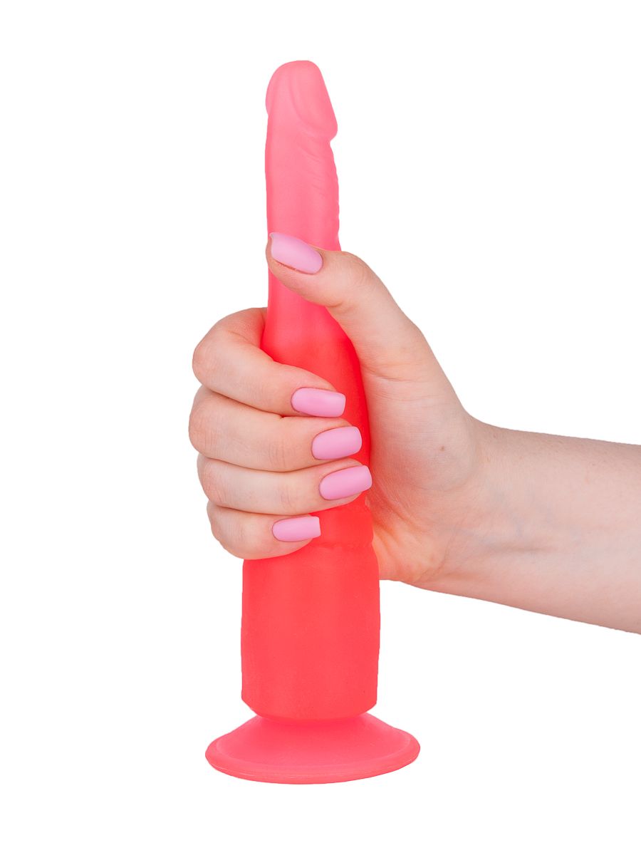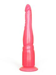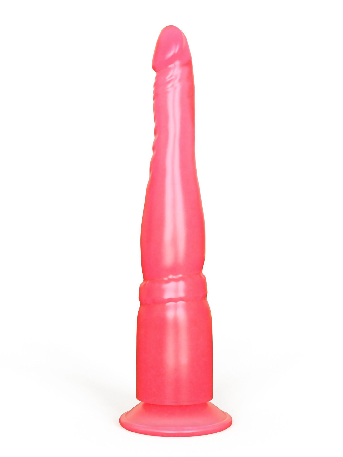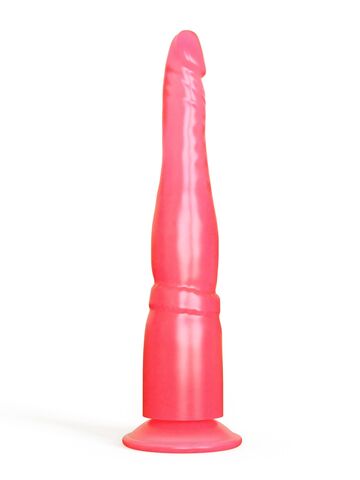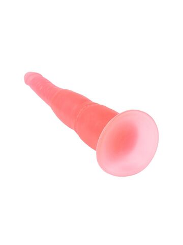 Этот тоненький фаллос из розового геля выглядит абсолютно реалистично: ярко выраженная головка, слегка вытянутая кверху, и легкий рельеф в виде складочек имитируют формы настоящего пениса.