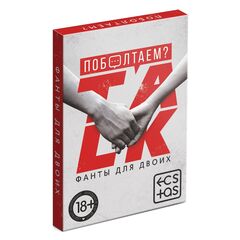 Наша игра станет незаменимым помощником, с которой вы откроете близкого человека с совершенно новой стороны! Все не так сложно: вытягивайте карточки, читайте вопросы и безудержно общайтесь. В комплекте: 20 карт, правила игры.