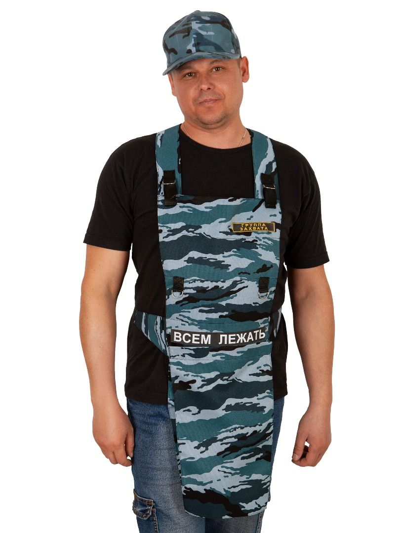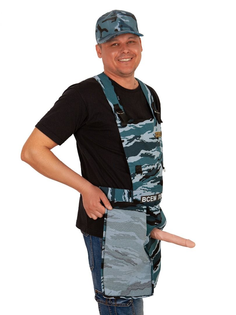 При открытии ткани правой рукой - фаллос поднимается. При закрытии двойной ткани обратно на липучку, фаллос опускается. Регулируется по росту - лямки на липучке,по объему талии - на поясе застежкой фастекс. В комплекте: фартук, фаллос.