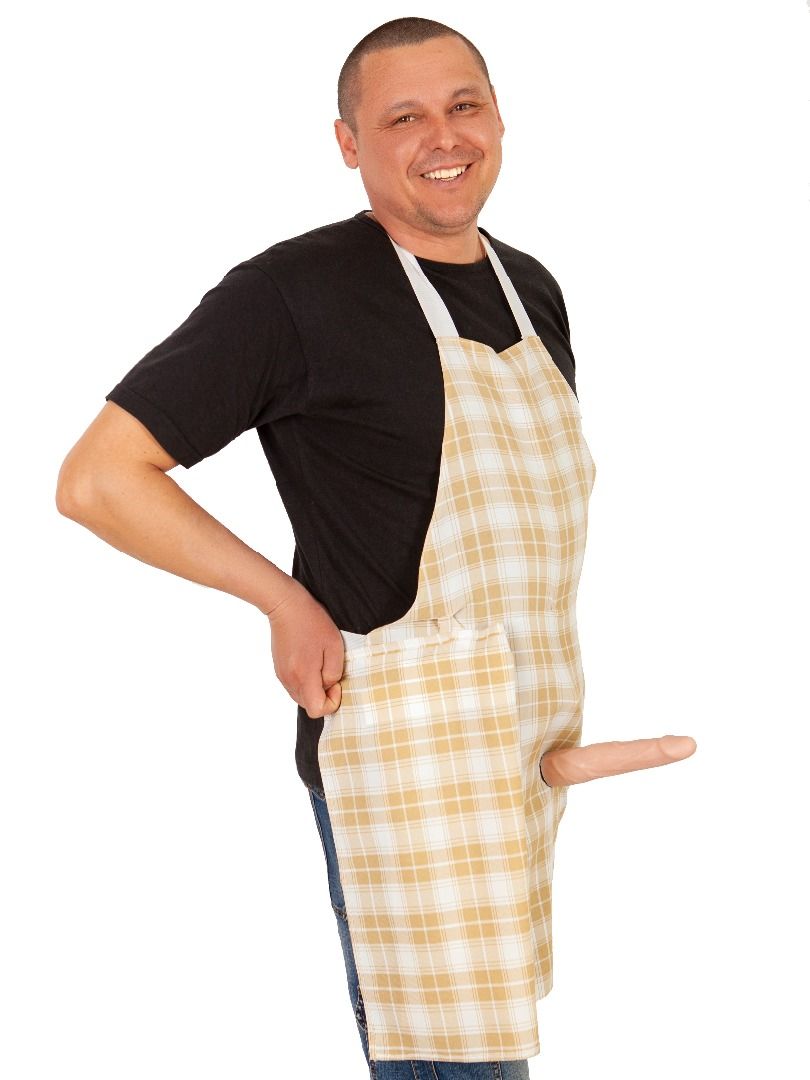 При открытии ткани правой рукой - фаллос поднимается . При закрытии двойной ткани обратно на липучку - фаллос опускается в висячее положение. В комплекте: фартук, фаллос.