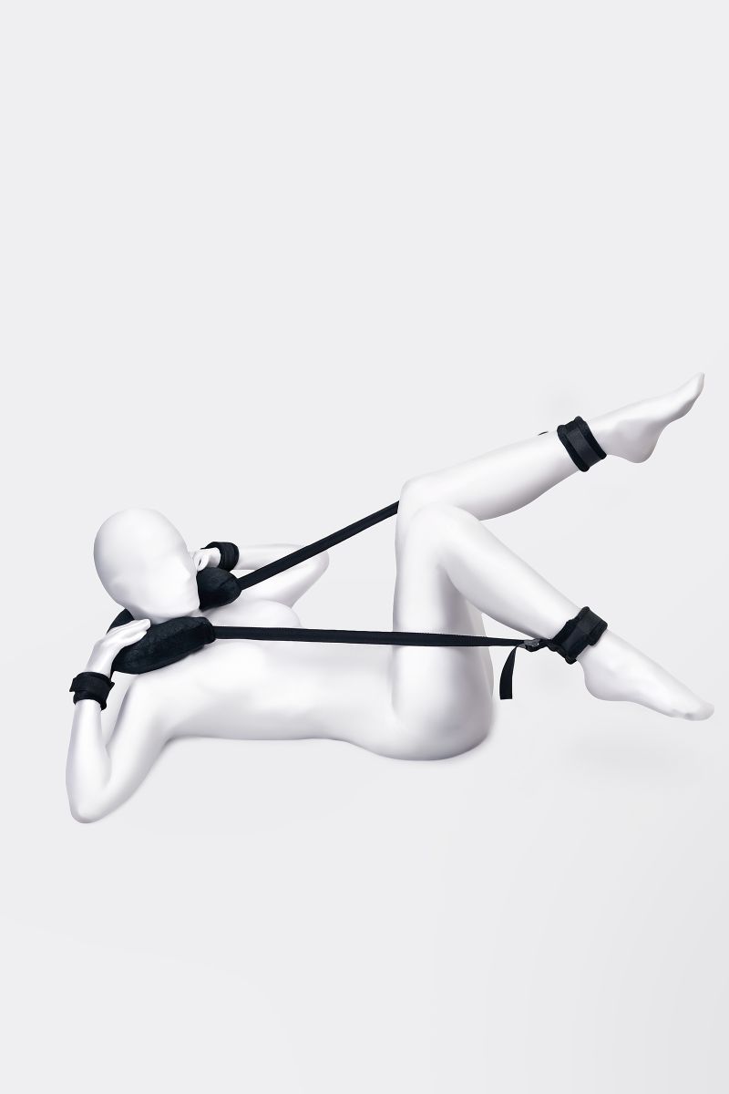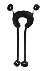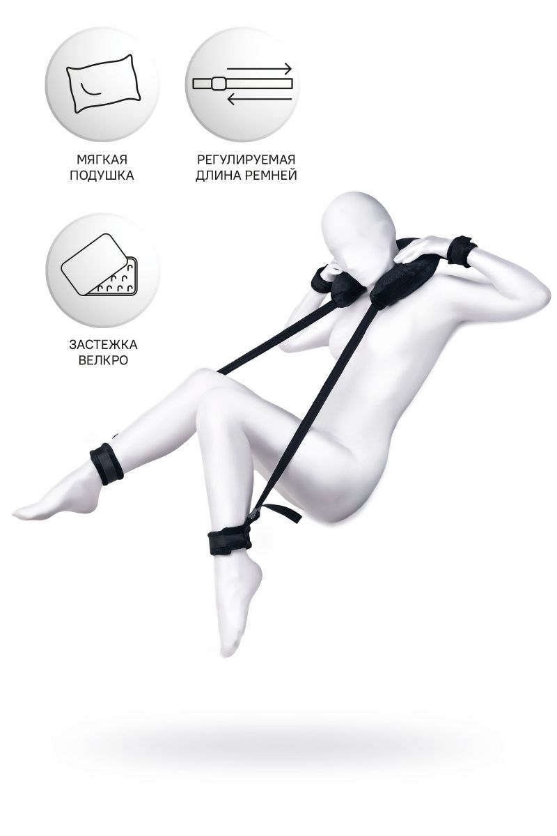 Чтобы экспериментировать и получать новые ощущения, необязательно быть опытным БДСМ-практиком. Главное, что должно волновать вас – это взаимное удовольствие. Для этого вам пригодится стропа для фиксации. Больше не нужно тратить силы на удерживание ног в нужной позиции. Мягкая подушка комфортно обхватывает шею, расслабляя ее и снимая нагрузку с позвоночника. Ремни регулируются и настраиваются по вашему желанию, чтобы удерживать бедра или лодыжки в нужном положении. Фиксирующая стропа оснащена также наручниками, позволяющим закрепить запястья у шеи, и лишить подчиняющегося партнера возможности двигать руками. Стропа для фиксации с подушкой для шеи поможет сосредоточиться на собственных ощущениях и подчиняться с комфортом. Общая длина - 127 см.