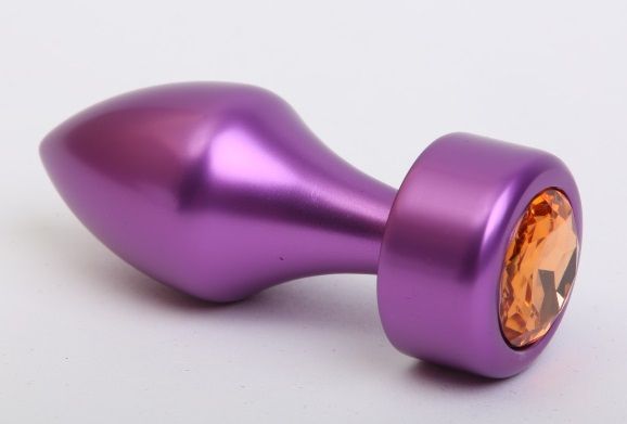 Фиолетовая анальная пробка с широким основанием и жёлтым кристаллом - 7,8 см.