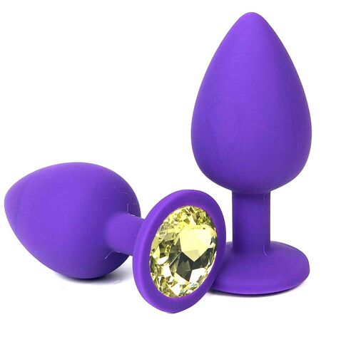 Фиолетовая анальная пробка с желтым стразом - 9,2 см.