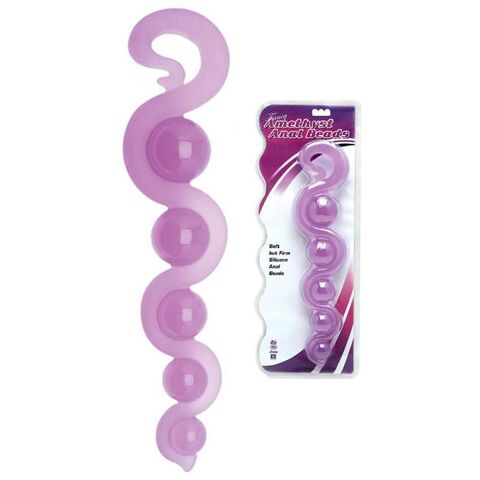 Фиолетовая анальная цепочка из 5 шариков различного диаметра. Анальная цепочка изготовлена из гипоаллергенного силикона. Минимальный диаметр - 1,5 см.