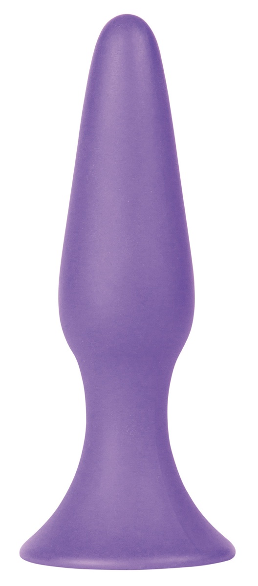 Анальный стимулятор фиолетового цвета с расширением книзу для безопасного использования. Изделие выполнено из высококачественного силикона, не имеет швов. Длина рабочей части - 11 см.