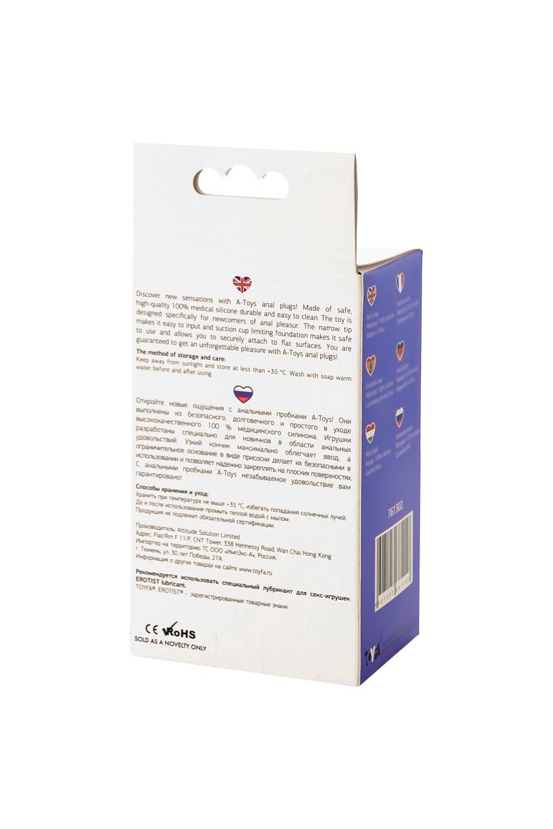 Откройте новые ощущения с анальными пробками A-Toys! Она выполнена из безопасного, долговечного и простого в уходе высококачественного 100% медицинского силикона. Игрушка разработана специально для новичков в области анальных удовольствий. Узкий кончик максимально облегчает ввод, а ограничительное основание в виде присоски делает ее безопасной в использовании и позволяет надежно закреплять на плоских поверхностях. Рабочая длина - 9 см.