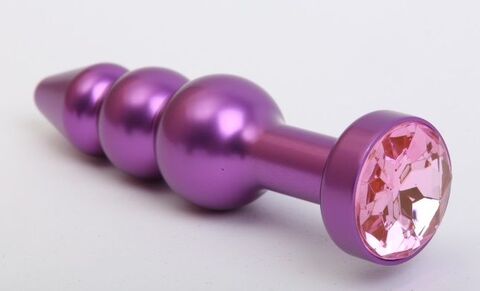 Фиолетовая фигурная анальная ёлочка с розовым кристаллом - 11,2 см.