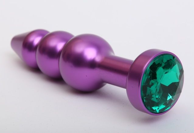 Фиолетовая фигурная анальная ёлочка с зелёным кристаллом - 11,2 см.