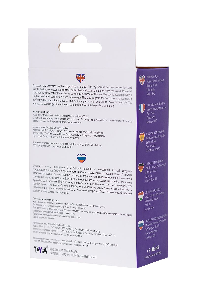 Откройте новые ощущения с анальной пробкой c вибрацией A-Toys! Игрушка представлена в удобном и практичном дизайне, а ощущения от введения такой втулки отличаются особой деликатностью. Мощная вибрация легко включается одной кнопкой в основании игрушки. Для комфортного и безопасного использования, пробка оснащена ручкой-ограничителем. Плаг отлично подходит как для мужчин, так и для женщин. Эта пробка прекрасно разнообразит прелюдию к анальному сексу в паре или может быть использована для стимуляции соло. С анальной вибропробкой A-Toys незабываемое удовольствие вам гарантировано! Рабочая длина - 8 см.