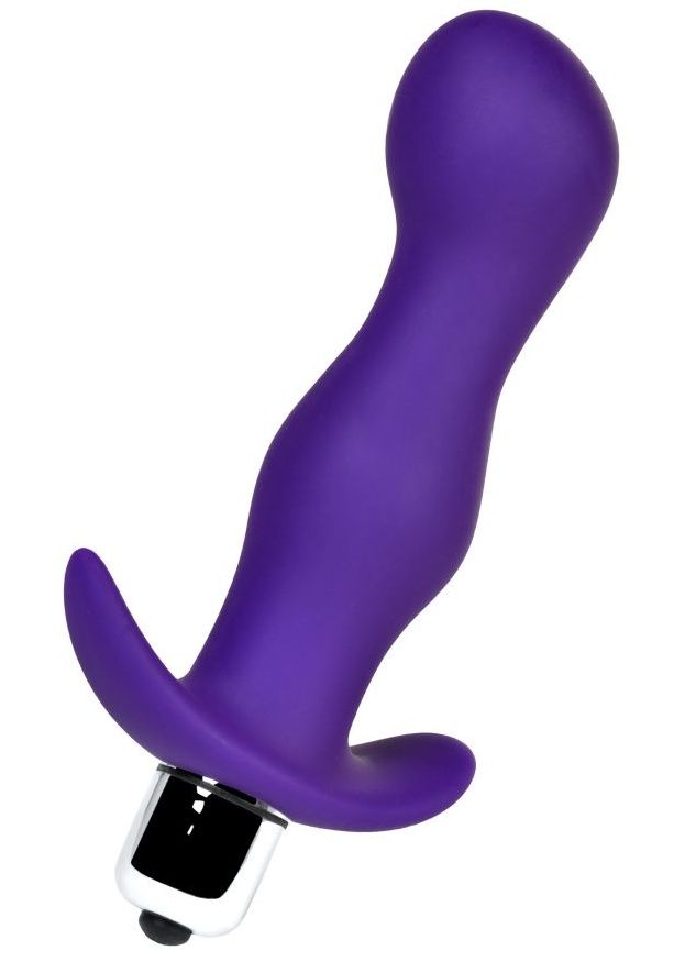 Фиолетовая изогнутая анальная вибропробка - 12,9 см.