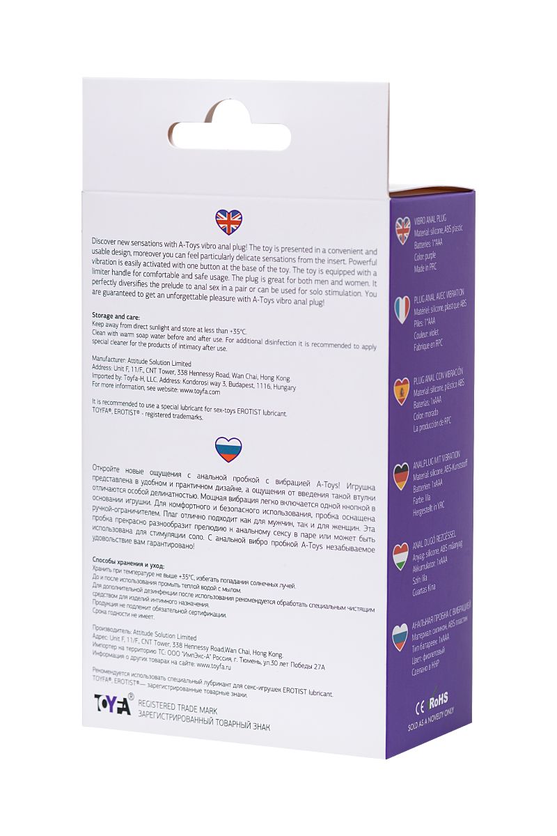 Откройте новые ощущения с анальной пробкой c вибрацией A-Toys! Игрушка представлена в удобном и практичном дизайне, а ощущения от введения такой втулки отличаются особой деликатностью. Мощная вибрация легко включается одной кнопкой в основании игрушки. Для комфортного и безопасного использования, пробка оснащена ручкой-ограничителем. Плаг отлично подходит как для мужчин, так и для женщин. Эта пробка прекрасно разнообразит прелюдию к анальному сексу в паре или может быть использована для стимуляции соло. С анальной вибро пробкой A-Toys незабываемое удовольствие вам гарантировано! Рабочая длина -11 см.