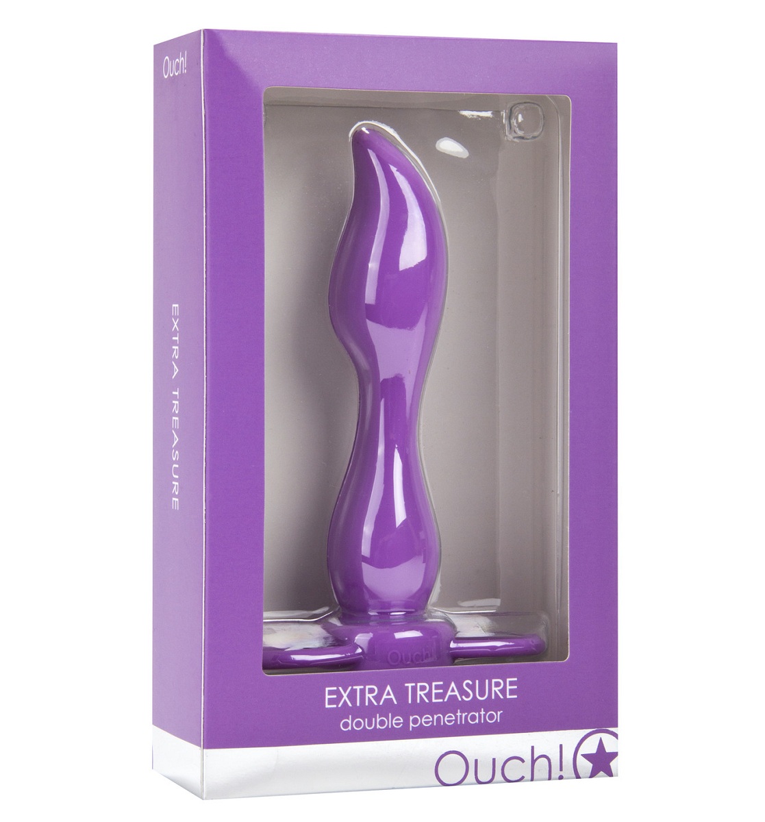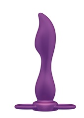 Насадка на пенис для двойного прониконовения фиолетового цвета. Имеет две петли для надежного крепления. Приятен на ощупь, не имеет швов.