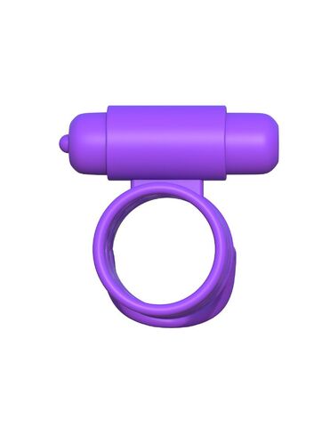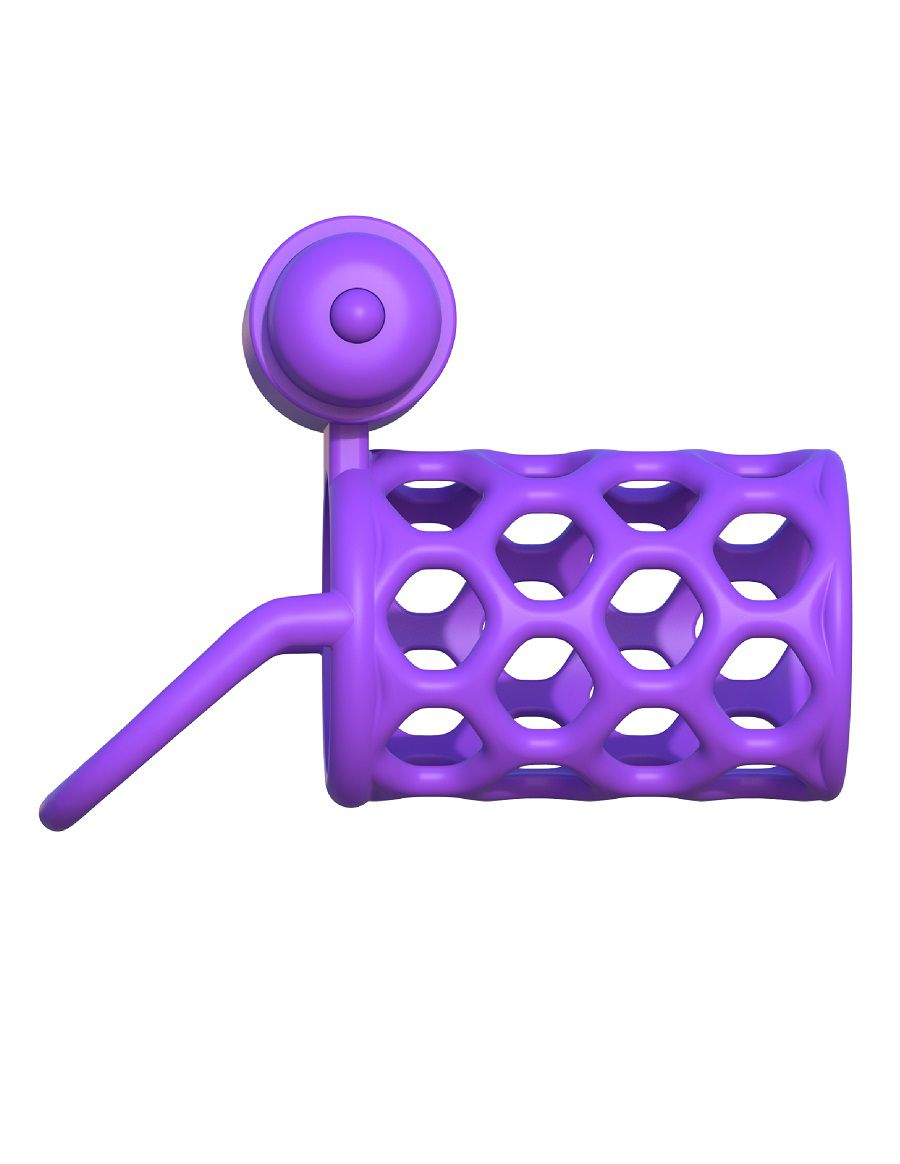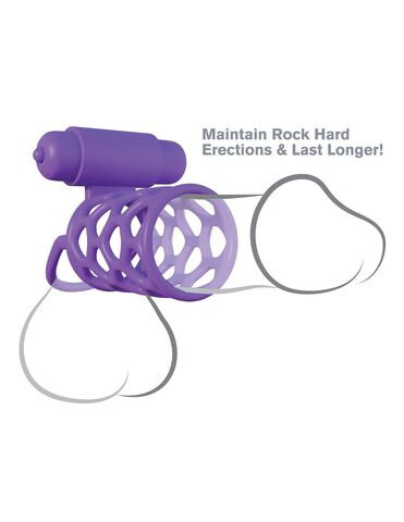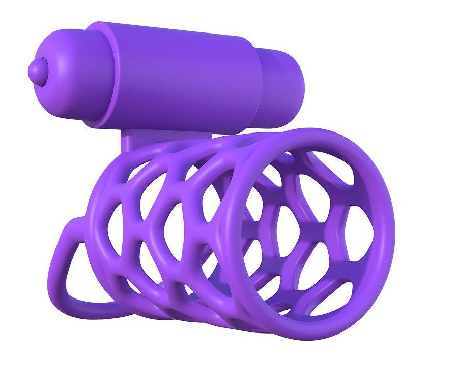 Фиолетовая насадка с подхватом мошонки и вибропулей. Батарейки в комплекте.