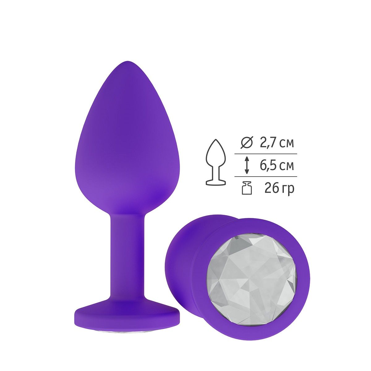 Гладенькая силиконовая пробка с кристаллом в ограничительном основании. Рабочая длина - 6,5 см.
