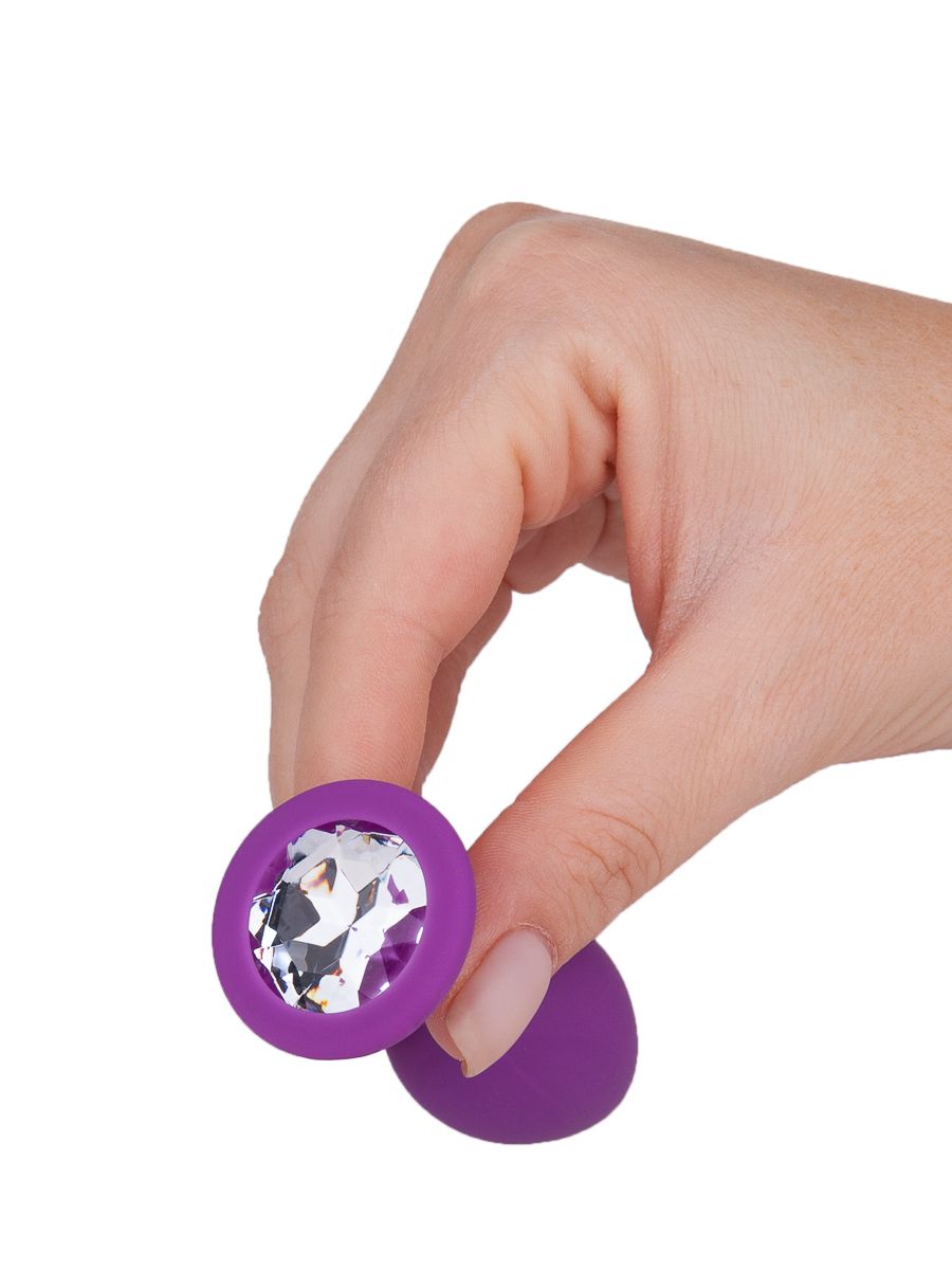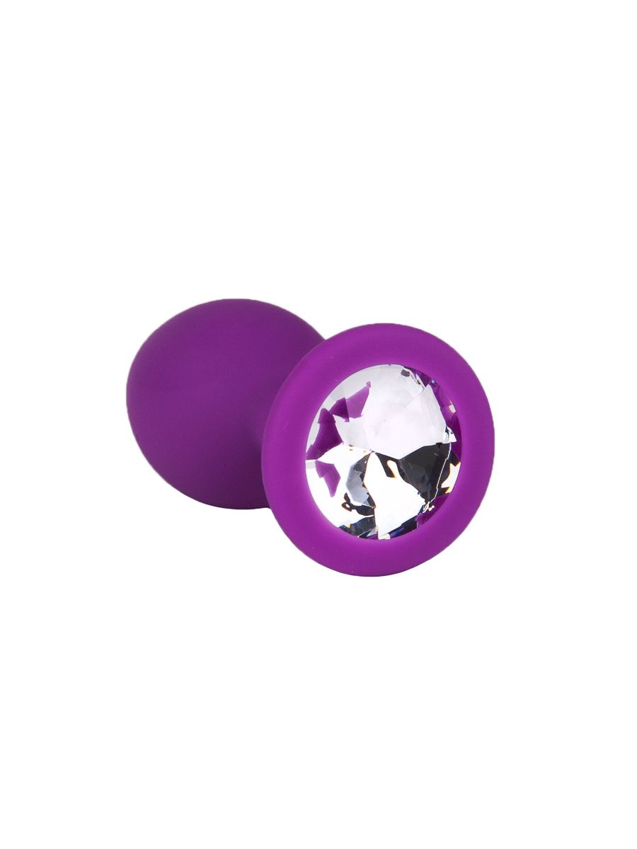 Фиолетовая силиконовая пробка с прозрачным кристаллом - 7,3 см.