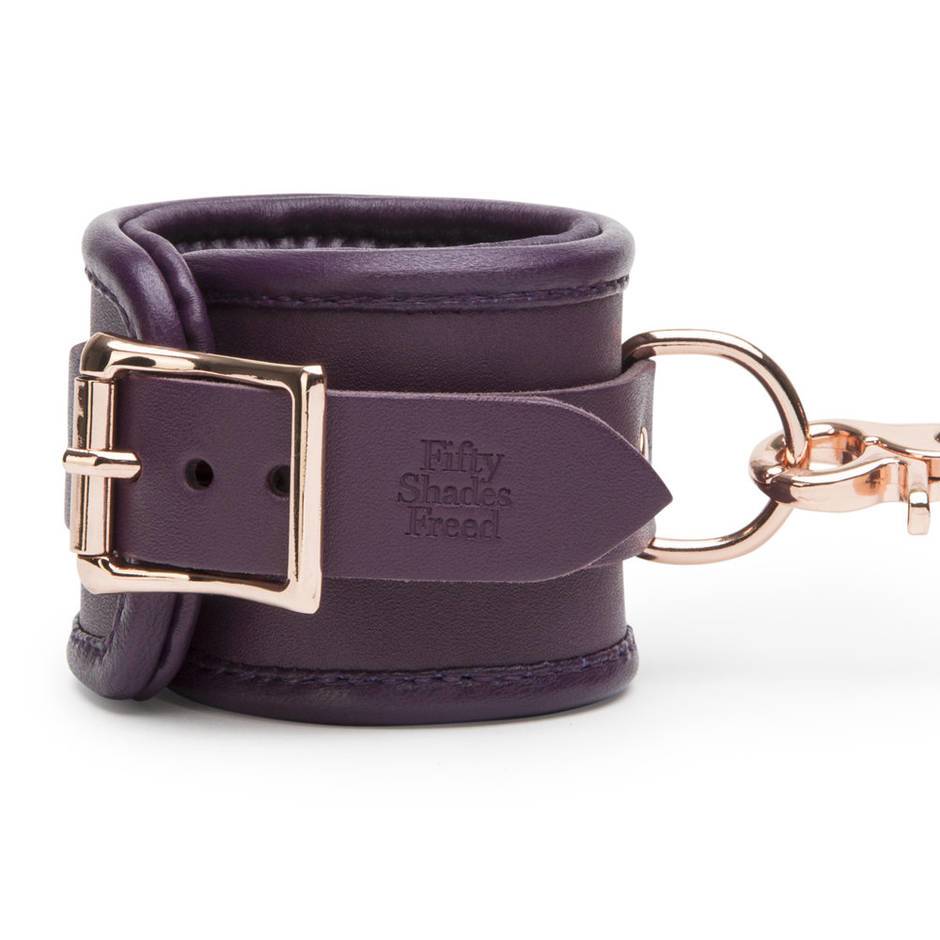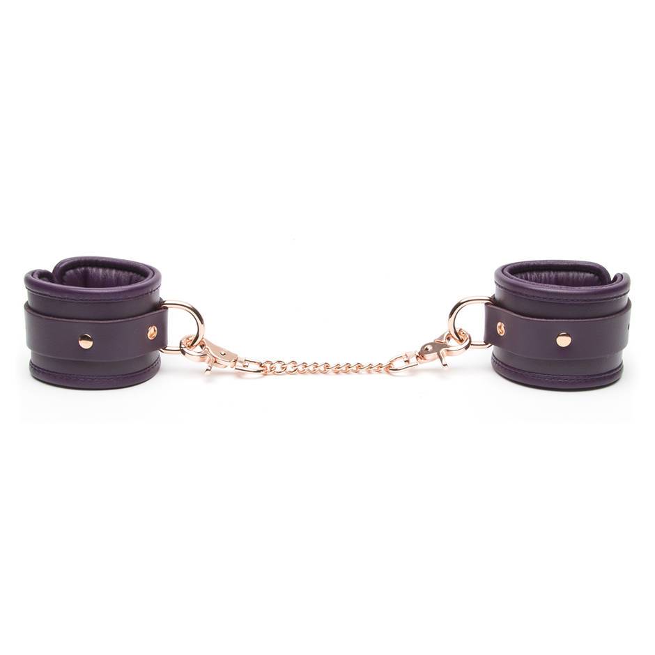 Кожаные наручники в стиле БДСМ. Попадая в их плен, ты будешь покорена их нежностью и шармом. Изысканное розовое золото, из которого сделана застёжка, позволит получить эстетическое удовольствие. А специальный дизайн наручников, позволит разбавлять их другими ремешками и верёвками. Экспериментируйте! Коллекция была одобрена автором Э. Л. Джеймс. Обхват регулируется от 11 до 19 см.
