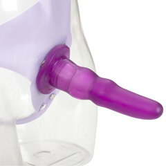 Сиреневые трусики из ПВХ с фиолетовой силиконовой насадкой-фаллосом. Может использоваться для анального секса.