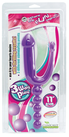 Фиолетовый анальный стимулятор с 3 отростками - 28 см.