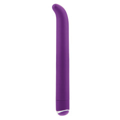Стимулятор точки джи фиолетового цвета. Изготовлен из пластика, имеющего мягкое сатиновое покрытие. Приятный на ощупь. Имеет 3 скорости вибрации и 7 режимов пульсации. Невероятно мощный виброэлемент расположен по всей длине изделия, но особо интенсивная вибрация сконцентрирована в головке для большей стимуляции. Режимы вибрации удобно переключаются при помощи кнопки, расположенной в основании. Водонепроницаемый. Выполнен в стильном дизайне, украшен серебряной вставкой у основания игрушки.